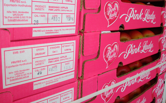 La compañía Apple and Pear Australia Ltd. (APAL) es la titular de todos los derechos de propiedad intelectual relacionadas a la marca registrada Pink Lady® y ha otorgado licencias exclusivas a varios representantes en todo el mundo, entre los que se encuentra Frutec Ltda. como representante para Uruguay.